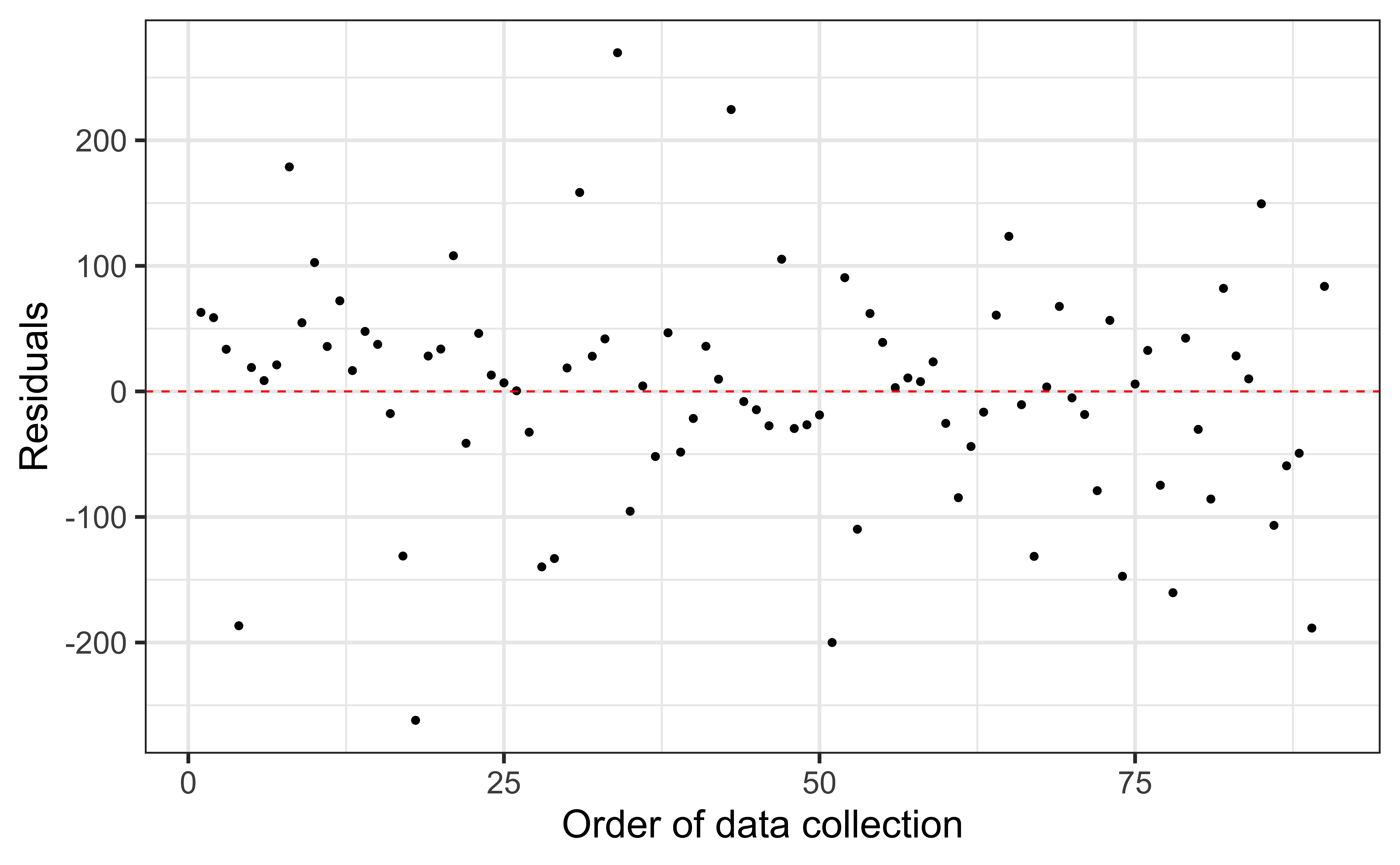 Residuals vs. order of data collection: