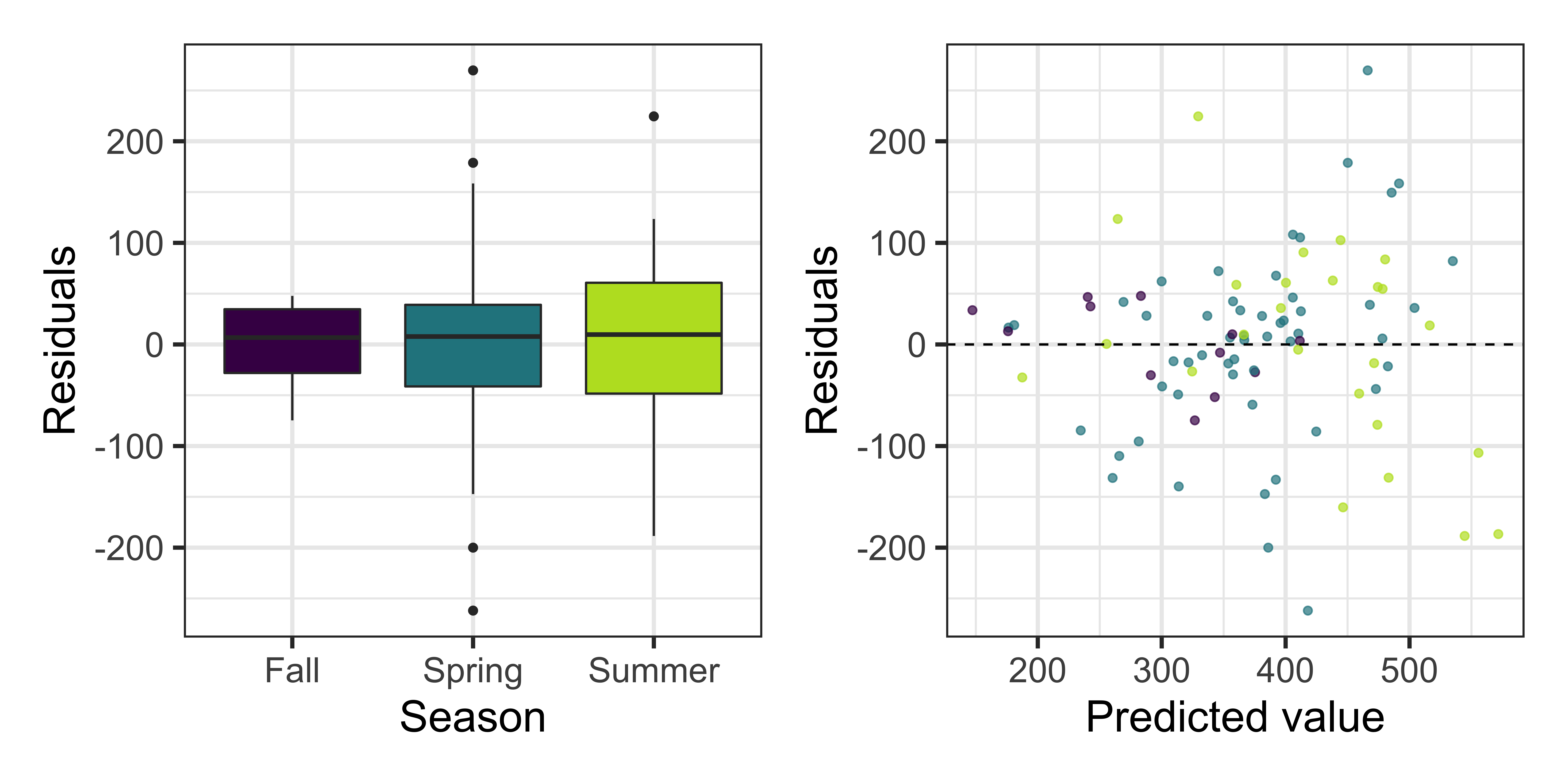 Residuals vs. predicted values by season: