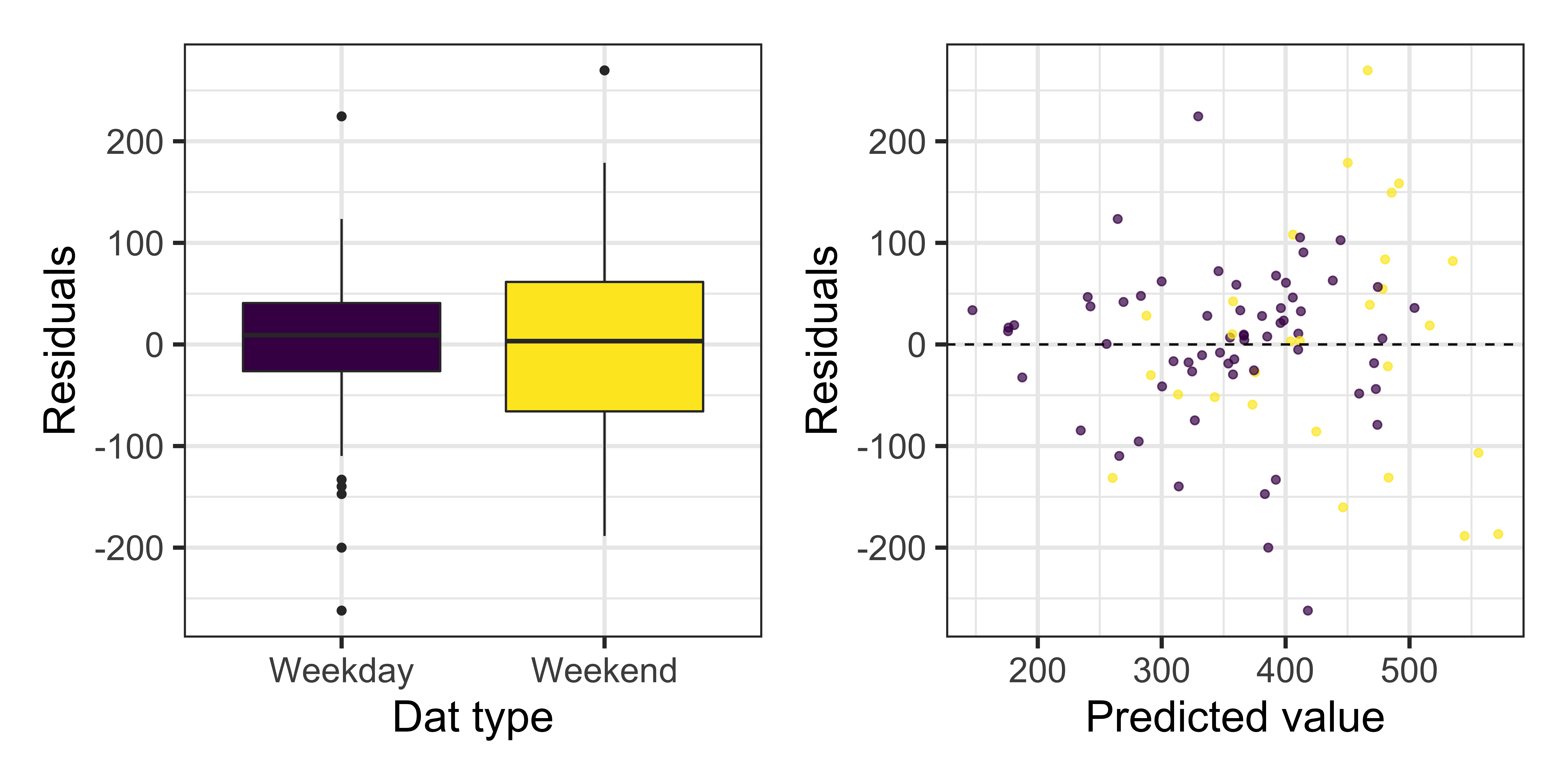 Residuals vs. predicted values by day_type: