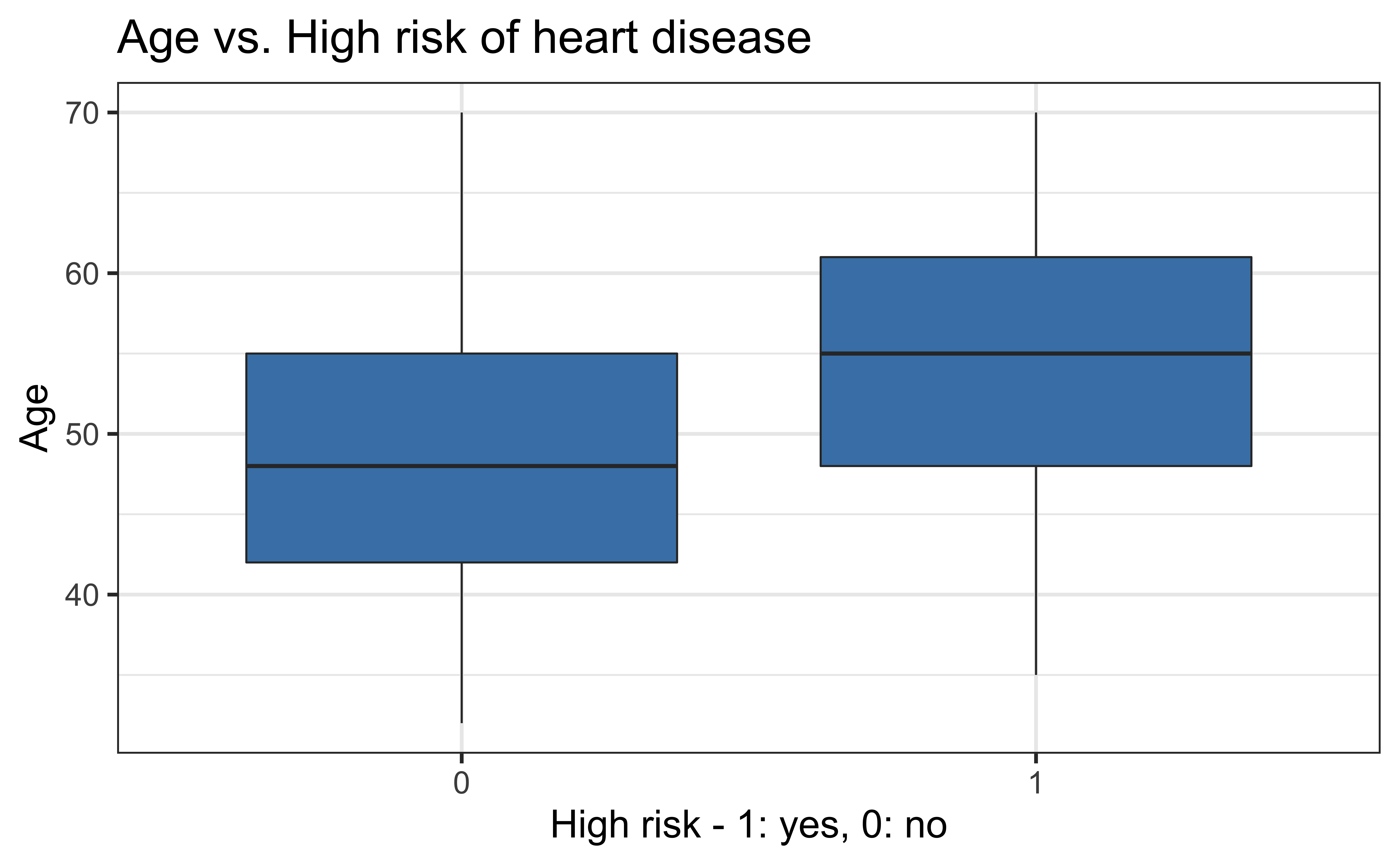 This dataset is from an ongoing cardiovascular study on residents of the town of Framingham, Massachusetts. We want to use age to predict if a randomly selected adult is high risk of having coronary heart disease in the next 10 years.